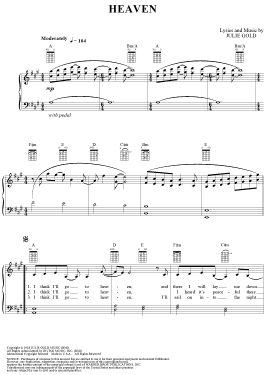 Digital Sheet Music for Heaven by Nanci Griffith, Julie Gold scored for Piano/Vocal/Chords; id:114132