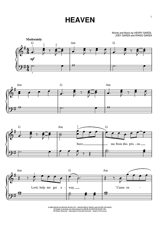 Digital Sheet Music for Heaven by Henry Garza, Joey Garza, Ringo Garza, Los Lonely Boys scored for Easy Piano; id:386033