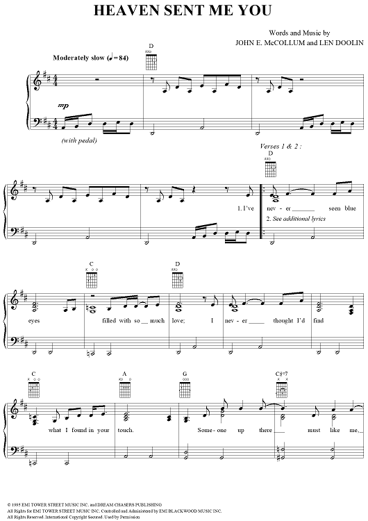 Digital Sheet Music for Heaven Sent Me You by John Michael Montgomery, John E. McCollum, Len Doolin scored for Piano/Vocal/Chords; id:251590