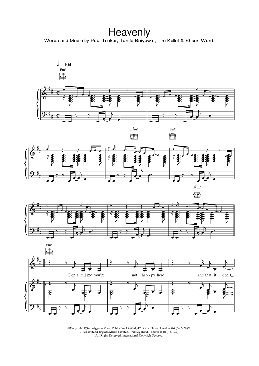 Digital Sheet Music for Heavenly by Lighthouse Family scored for Piano/Vocal/Chords; id:376221