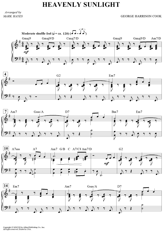 Digital Sheet Music for Heavenly Sunlight by Mark Hayes, George H. Cook scored for Piano Solo; id:456468