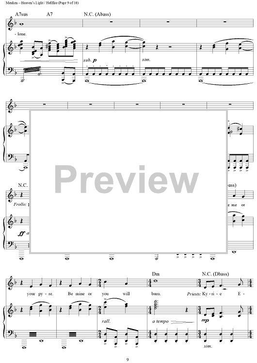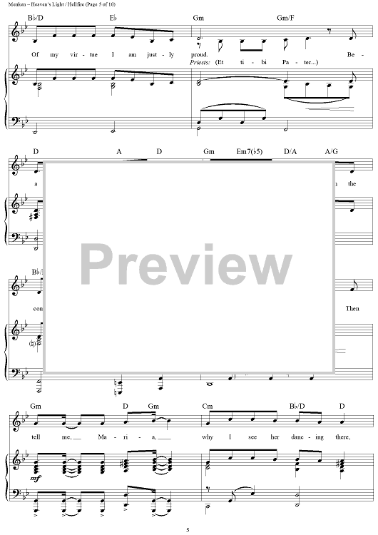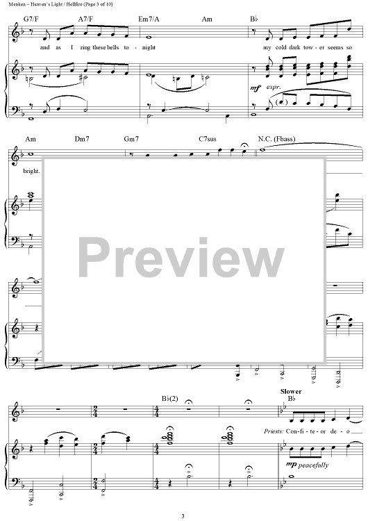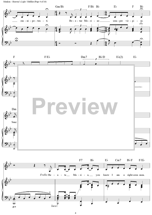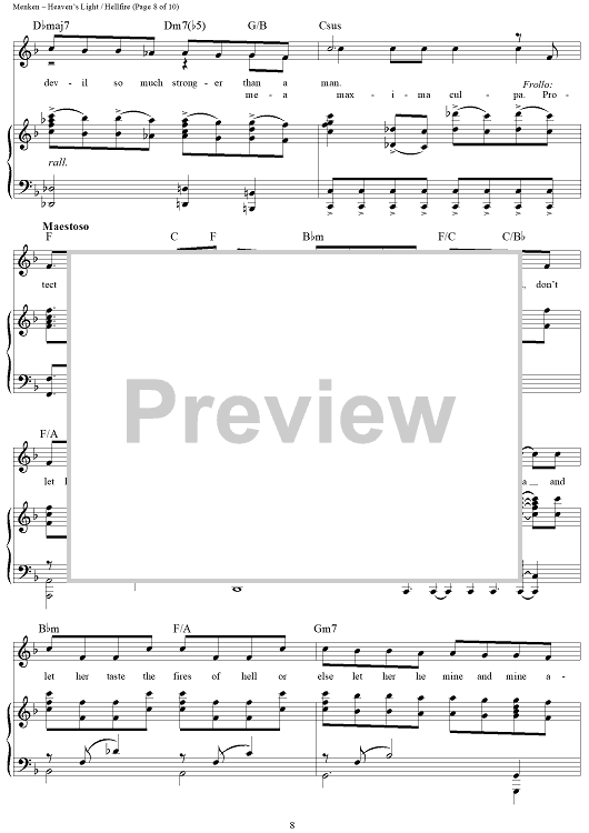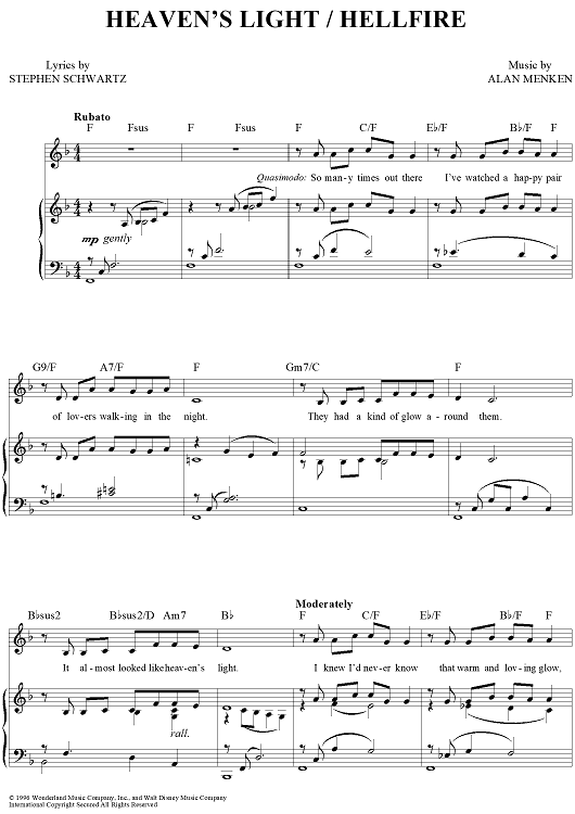 Digital Sheet Music for Heaven's Light / Hellfire by Alan Menken, Stephen Schwartz scored for Piano/Vocal/Chords; id:418164