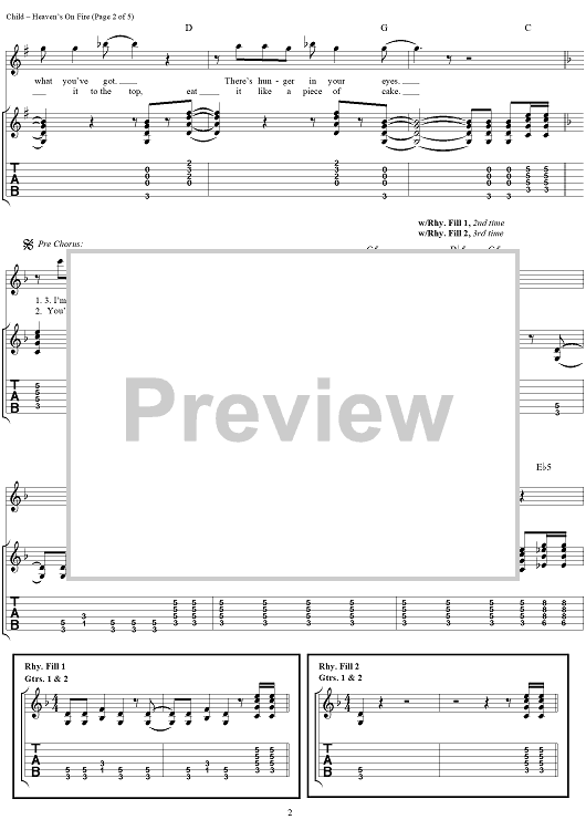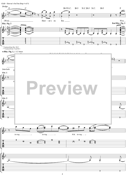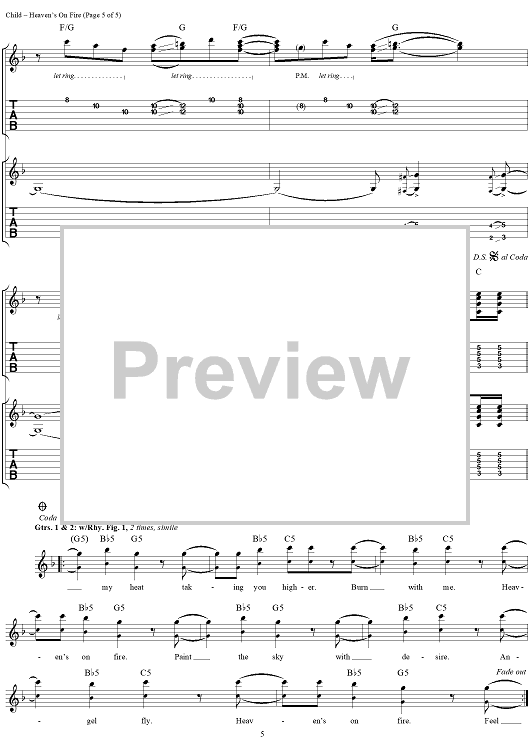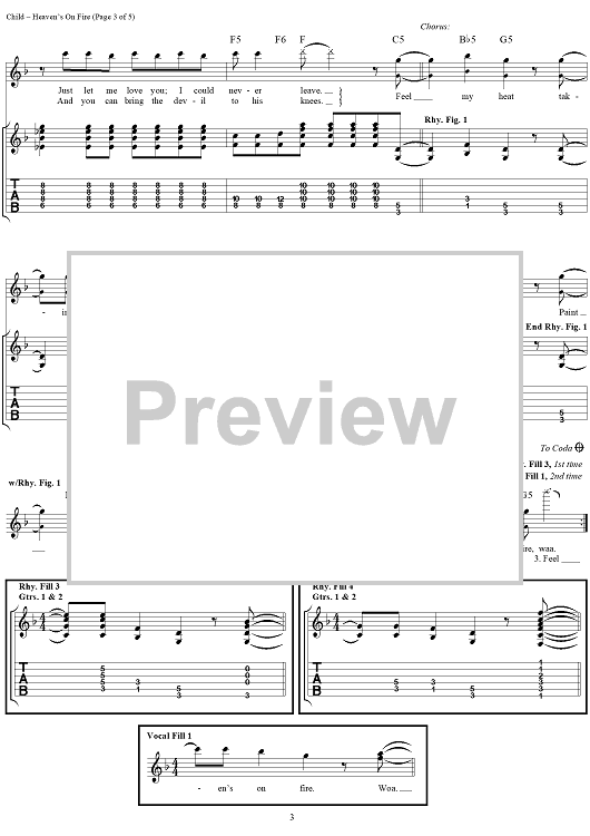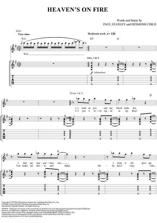 Digital Sheet Music for Heaven's On Fire by Desmond Child, Paul Stanley, KISS scored for Guitar Tab/Vocal; id:206952