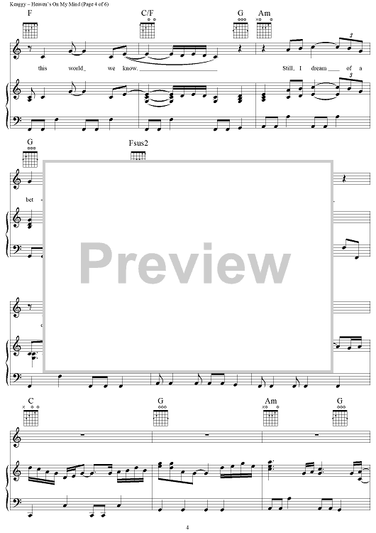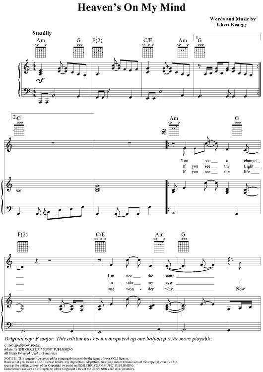Digital Sheet Music for Heaven's On My Mind by Cheri Keaggy scored for Piano/Vocal/Chords; id:249968