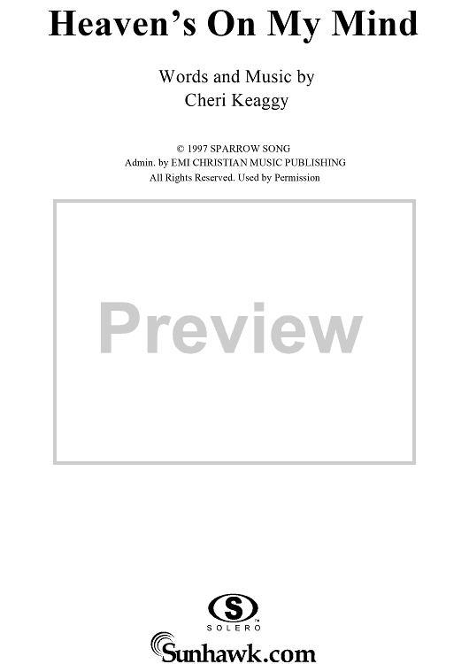 "Heaven's On My Mind" Sheet Music by Cheri Keaggy