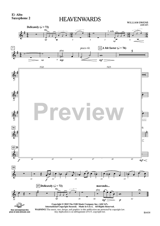 Digital Sheet Music for Heavenwards - Eb Alto Sax 2 by William Owens scored for Concert Band; id:455081
