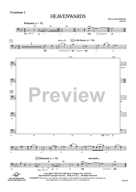 Digital Sheet Music for Heavenwards - Trombone 2 by William Owens scored for Concert Band; id:455088