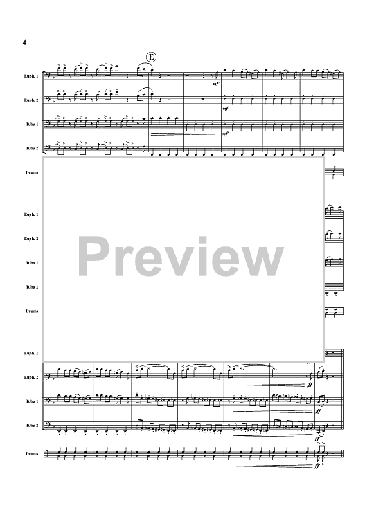 Digital Sheet Music for Heavy Metal - Score by , Eugene Anderson scored for Tuba Quartet with optional Drums; id:358383