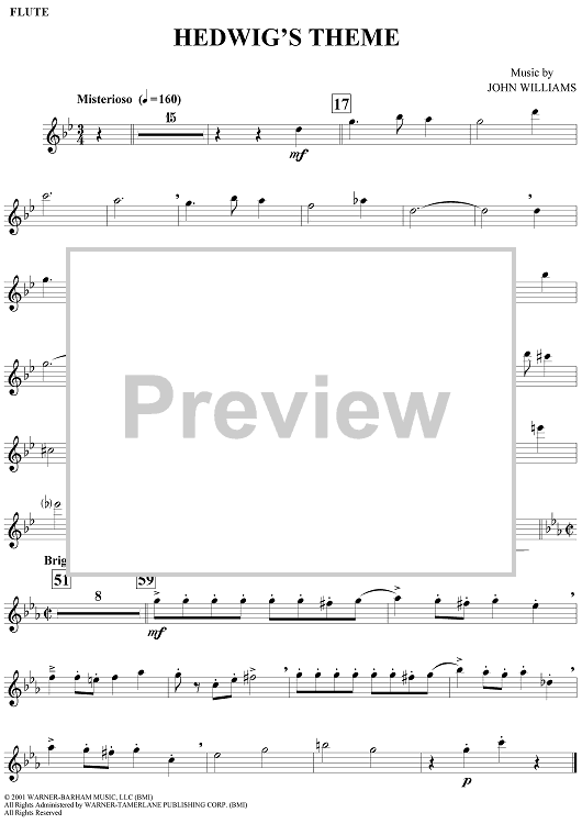 Digital Sheet Music for Hedwig's Theme by John Williams scored for Flute/Piano; id:313001