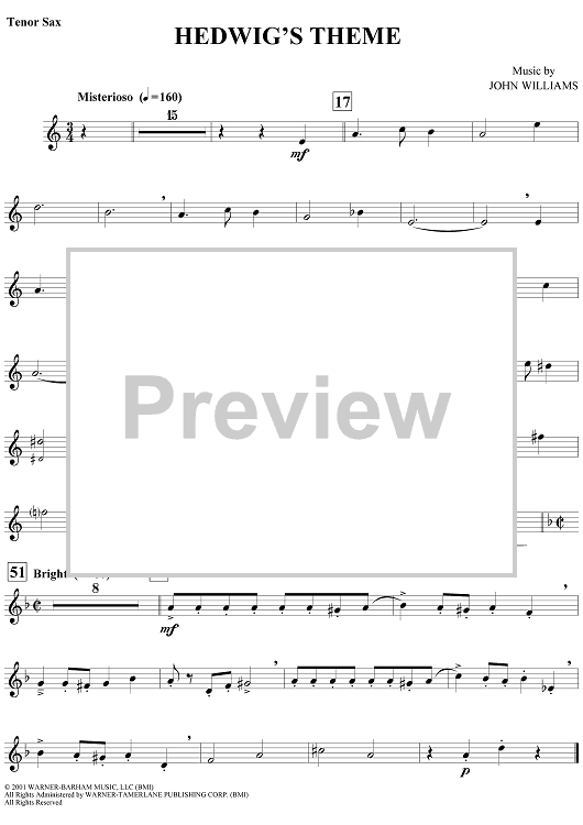Digital Sheet Music for Hedwig's Theme by John Williams scored for Tenor Sax/Piano; id:317317
