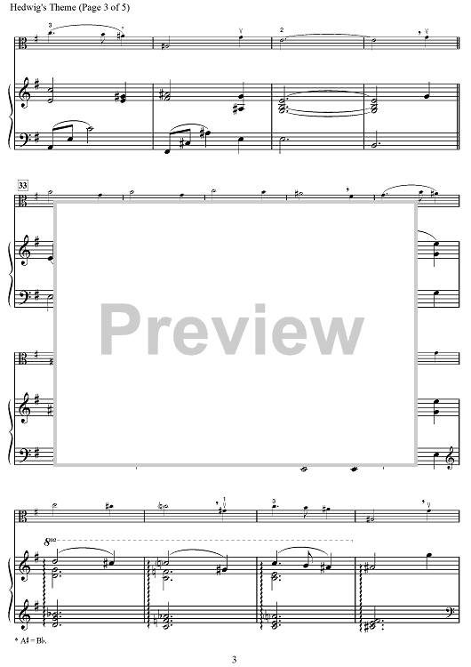 Digital Sheet Music for Hedwig's Theme by John Williams scored for Viola/Piano; id:498064