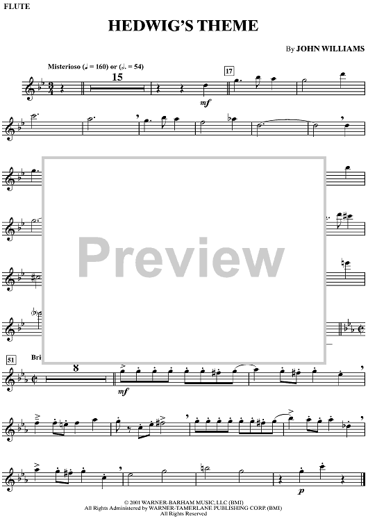 Digital Sheet Music for Hedwig's Theme by John Williams scored for Flute/Piano; id:498076