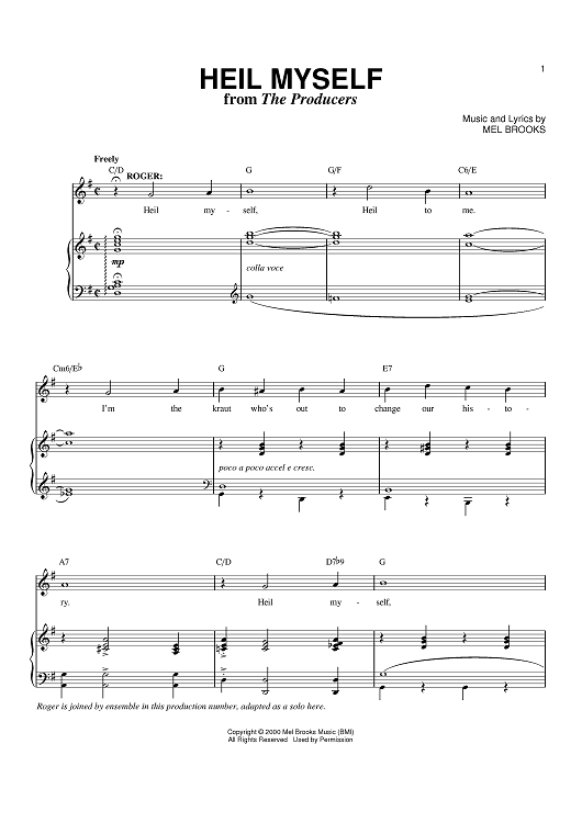 Digital Sheet Music for Heil Myself by Mel Brooks scored for Piano/Vocal/Chords; id:402921