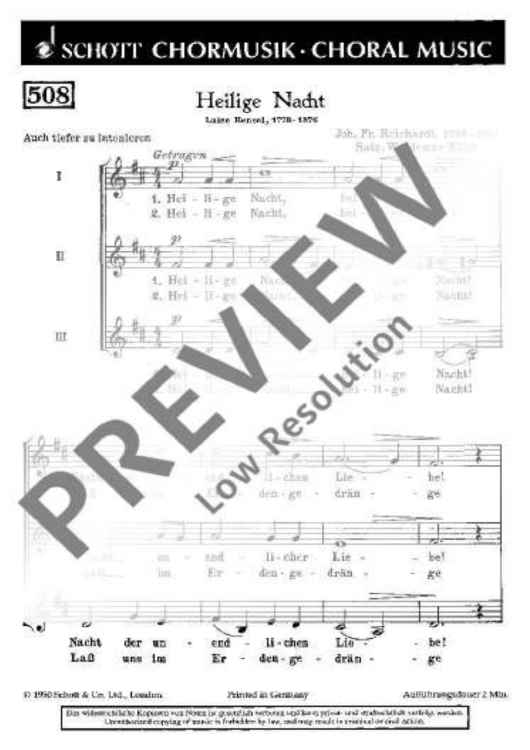 "Heilige Nacht - Choral Score" Sheet Music by Johann Friedrich Reichardt