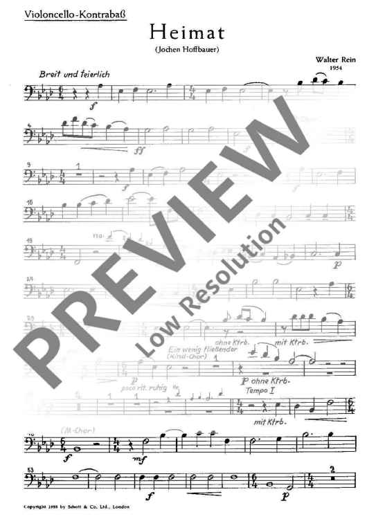 Digital Sheet Music for Heimat - Cello/double Bass by Walter Rein scored for Children's Choir, Female Choir, Men's Choir And Blas- Or String Orchestra; id:488713