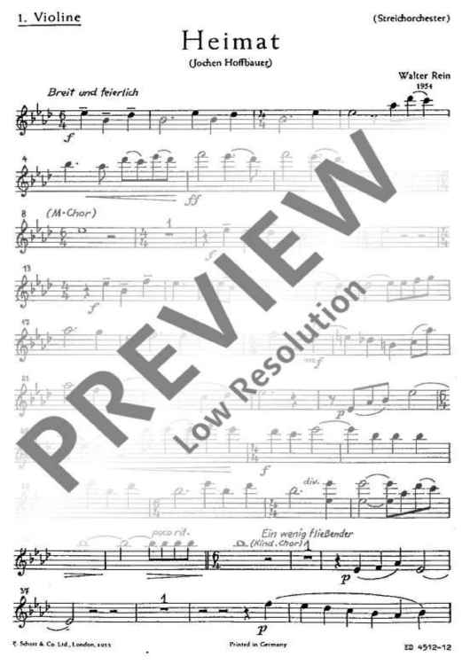 "Heimat - Violin I" Sheet Music by Walter Rein