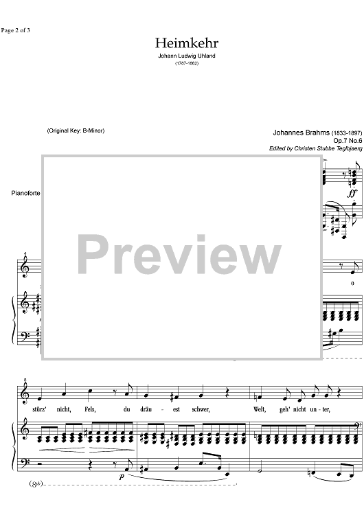 Digital Sheet Music for Heimkehr Op. 7 No. 6 by , Johannes Brahms scored for Mezzo-soprano or Baritone/Piano; id:332815