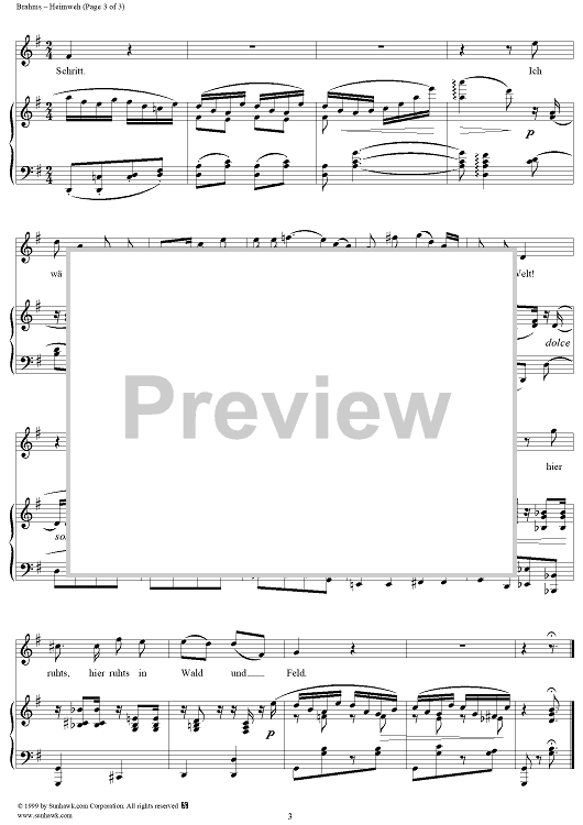 Digital Sheet Music for Heimweb I - No. 7 from "Nine Lieder and Songs" op. 63 by Johannes Brahms, Groth scored for Voice/Piano; id:273980
