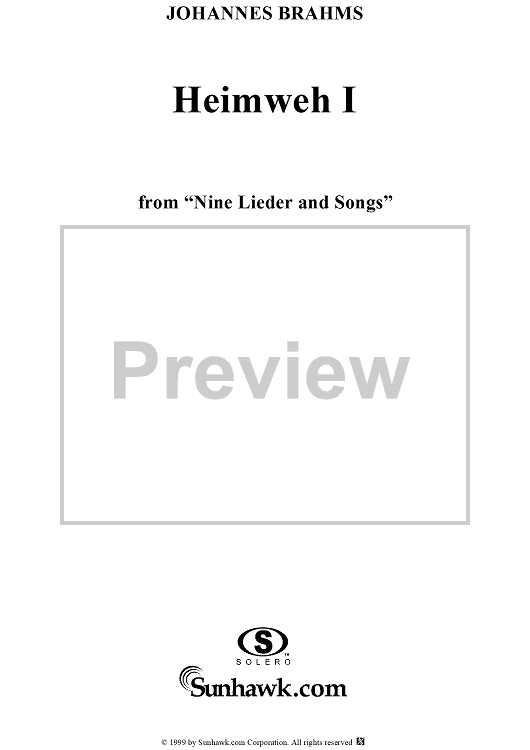 "Heimweb I - No. 7 from "Nine Lieder and Songs" op. 63" Sheet Music by Johannes Brahms