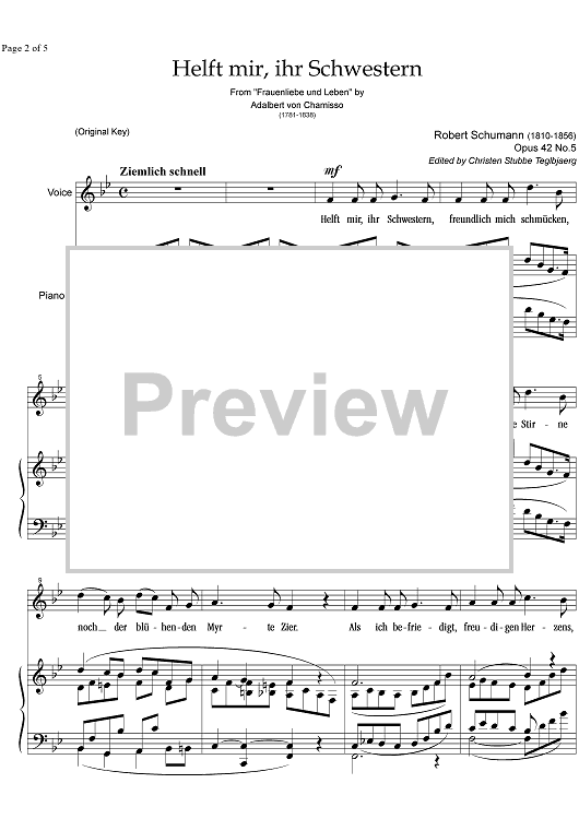 Digital Sheet Music for Helft mir, ihr Schwestern Op.42 No. 5 by , Robert Schumann scored for Mezzo-soprano or Baritone/Piano; id:343354