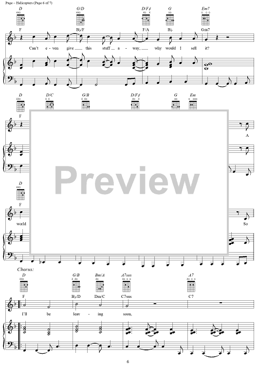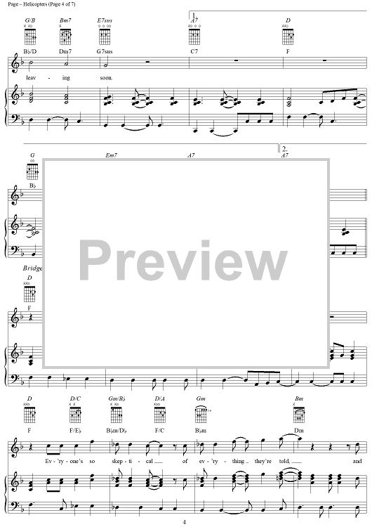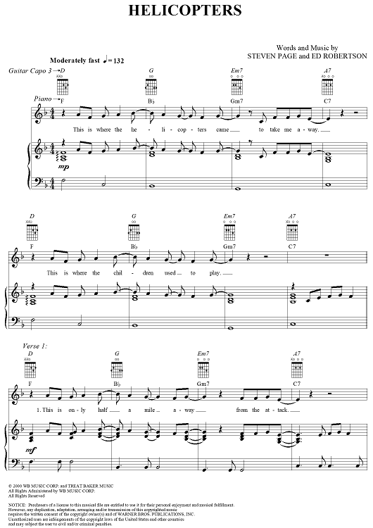 Digital Sheet Music for Helicopters by Steven Page, Ed Robertson, Barenaked Ladies scored for Piano/Vocal/Chords; id:286296