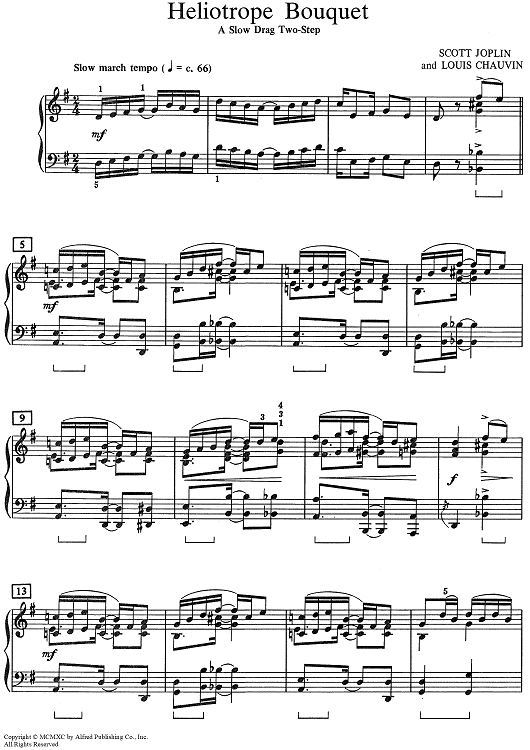 "Heliotrope Bouquet" Sheet Music by Scott Joplin