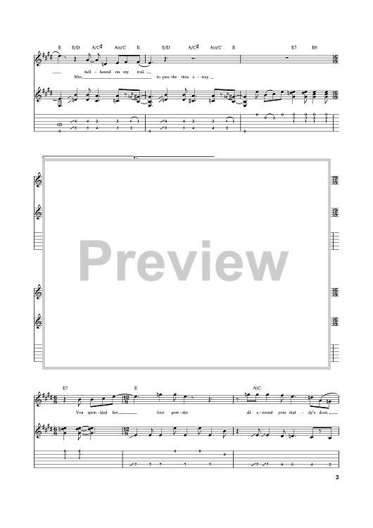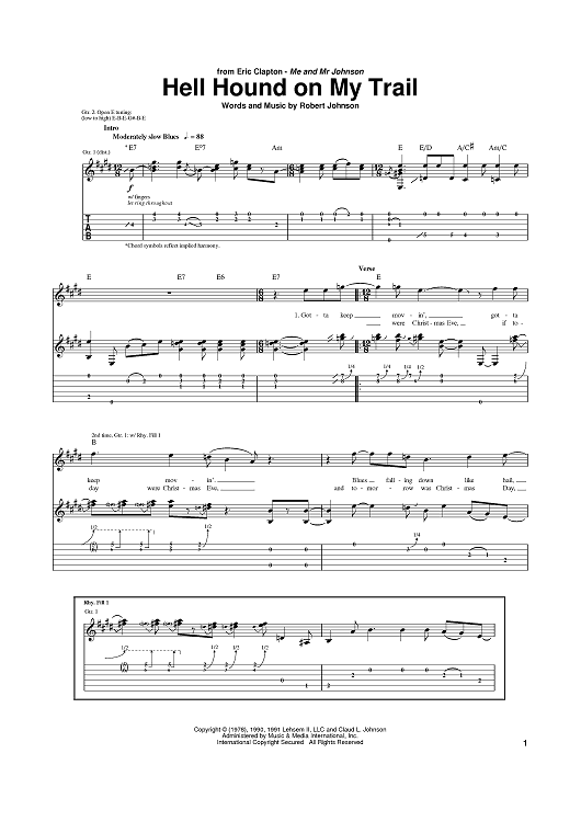 Digital Sheet Music for Hell Hound On My Trail by Eric Clapton, Robert Johnson scored for Guitar Tab; id:374920