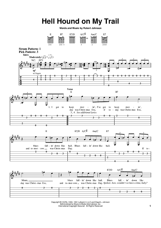 "Hell Hound On My Trail" Sheet Music by Robert Johnson