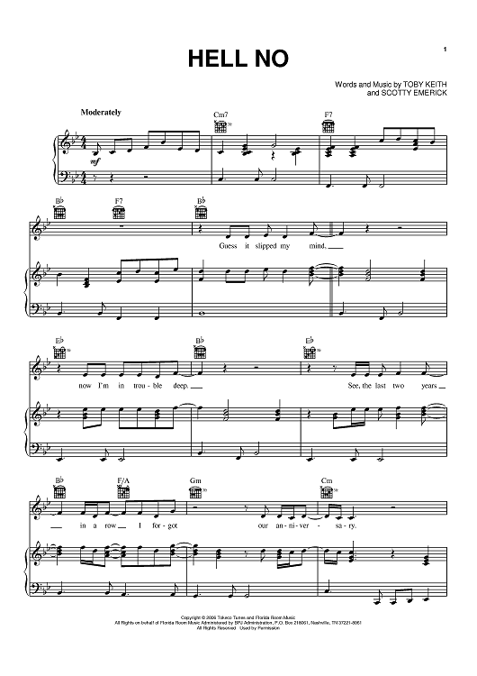 Digital Sheet Music for Hell No by Scott Emerick, Toby Keith scored for Piano/Vocal/Chords; id:391846