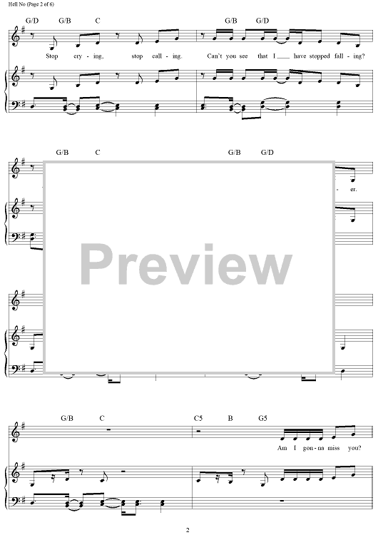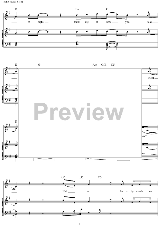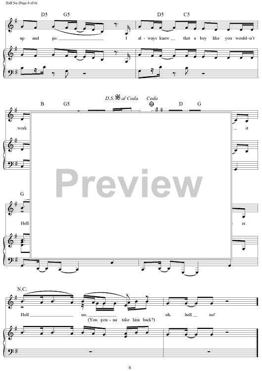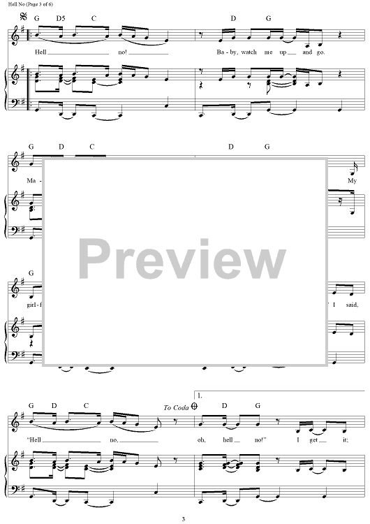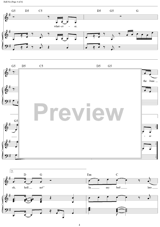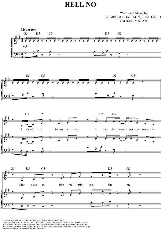Digital Sheet Music for Hell No by Luke Laird, Barry Dean, Ingrid Michaelson scored for Piano/Vocal/Chords; id:462435