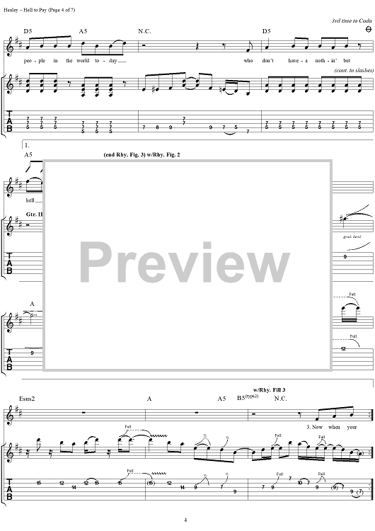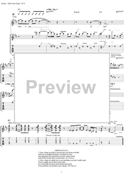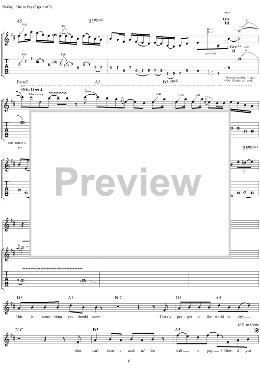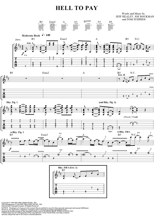 Digital Sheet Music for Hell To Pay by Tom Stephen, The Jeff Healey Band, Jeff Healey, Joe Rockman scored for Guitar Tab/Vocal; id:266900