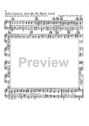 Digital Sheet Music for Hello Central, Give Me No Man's Land by Jean Schwartz, Samuel M. Lewis, Joseph Young scored for Piano/Vocal/Chords; id:423258
