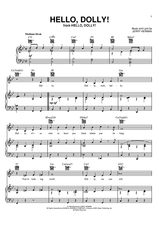 Digital Sheet Music for Hello, Dolly! by Louis Armstrong, Bobby Darin, Wayne Newton, Jerry Herman scored for Piano/Vocal/Chords; id:385732