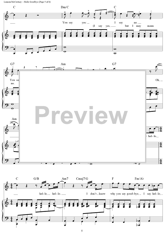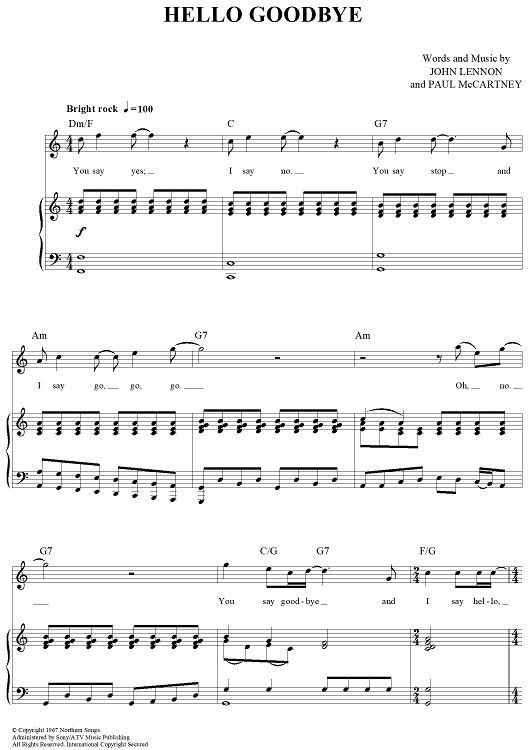 Digital Sheet Music for Hello Goodbye by Paul McCartney, The Beatles, John Lennon scored for Piano/Vocal/Chords; id:362913