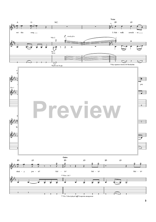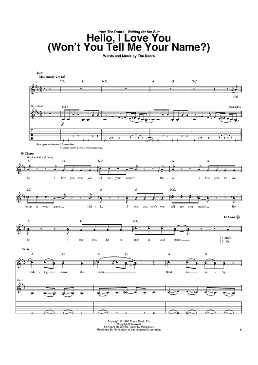Digital Sheet Music for Hello, I Love You (Won't You Tell Me Your Name?) by The Doors scored for Guitar Tab; id:393660