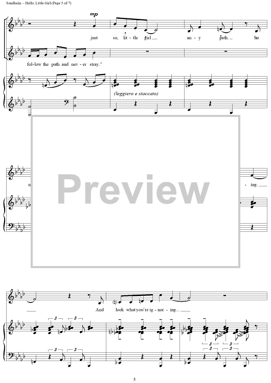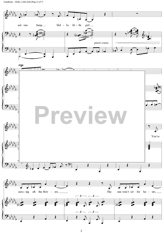 Digital Sheet Music for Hello, Little Girl (Film Version) by Stephen Sondheim scored for Piano/Vocal; id:448093