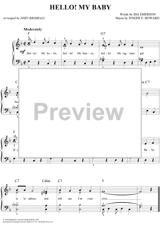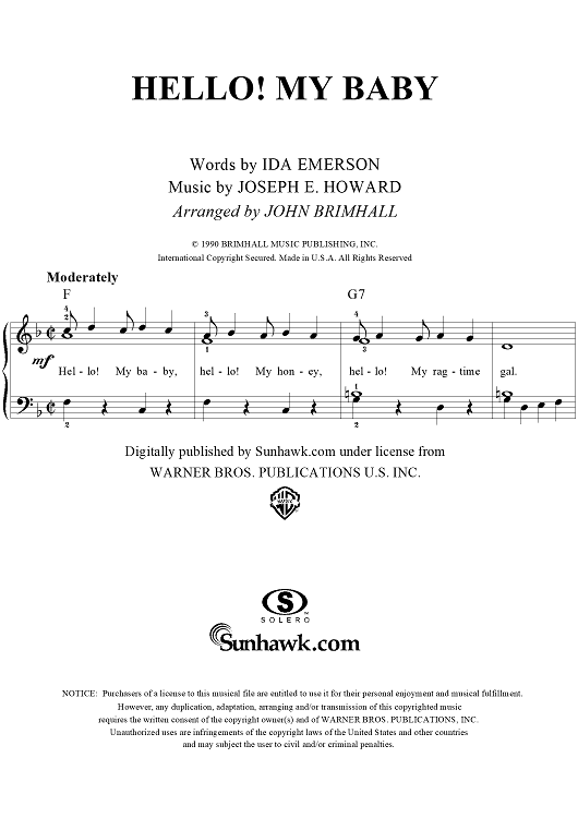 Digital Sheet Music for Hello! My Baby by Joseph E. Howard, Ida Emerson, John Brimhall scored for Easy Piano/Vocal; id:266371
