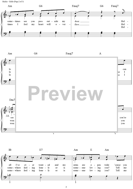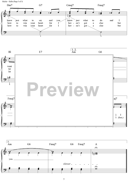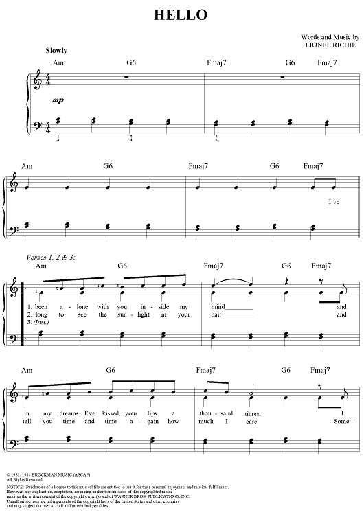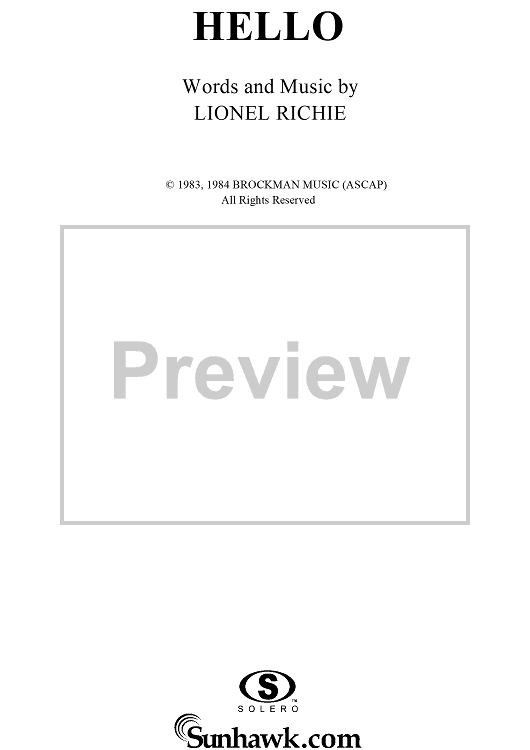 Digital Sheet Music for Hello by Lionel Richie scored for Piano/Vocal/Chords; id:116321