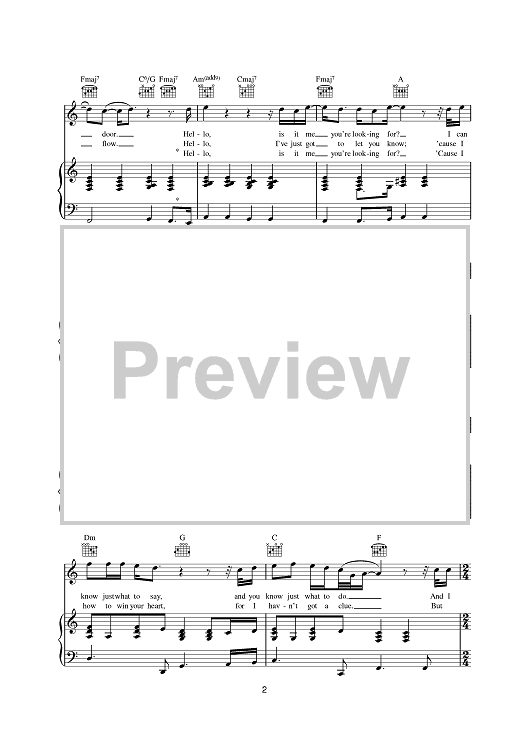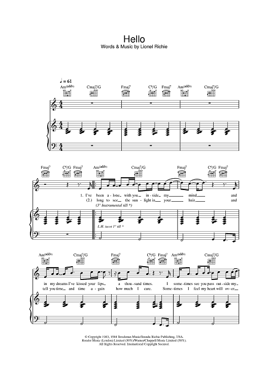 Digital Sheet Music for Hello by Lionel Richie scored for Piano/Vocal/Chords; id:380675