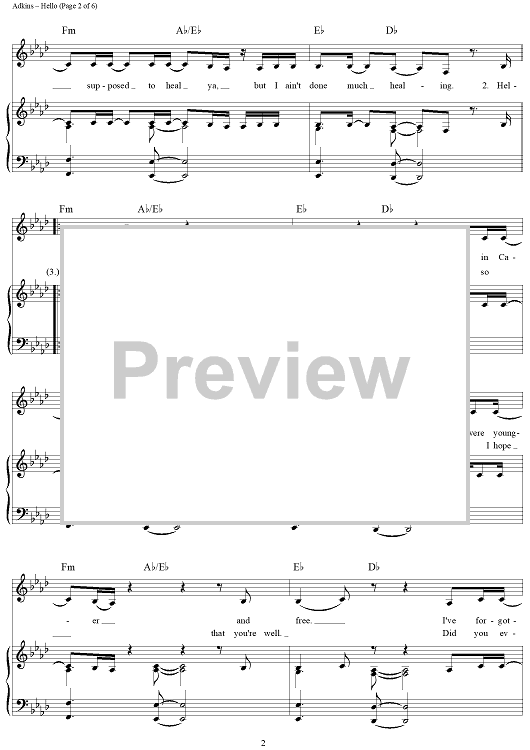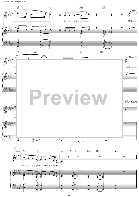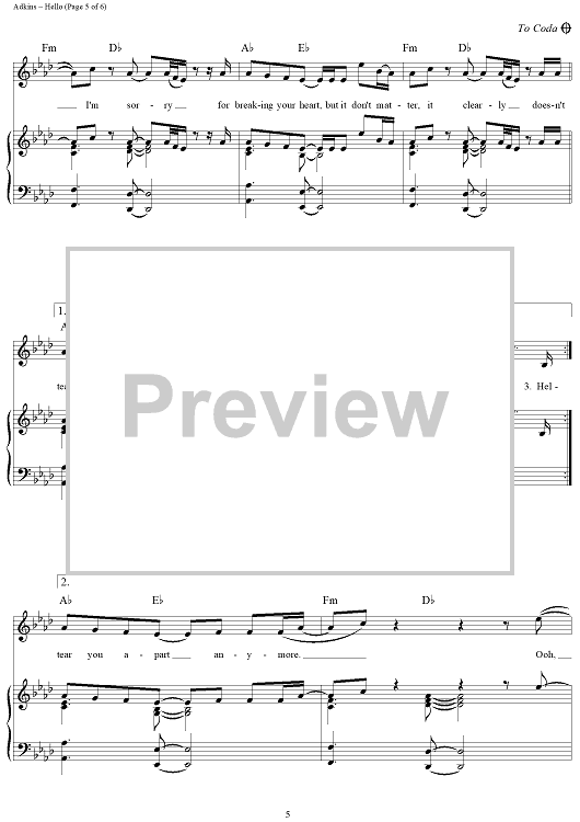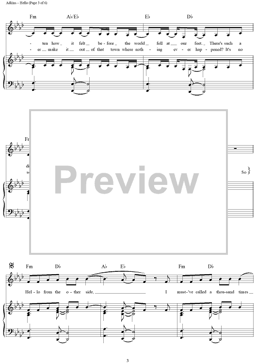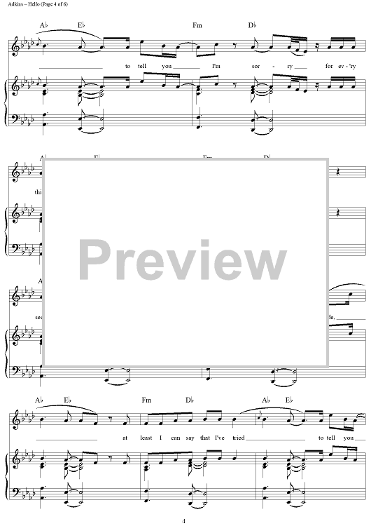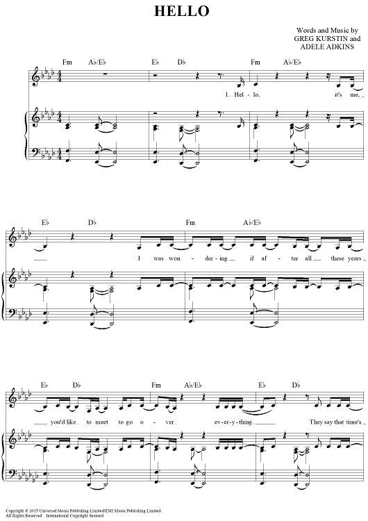 Digital Sheet Music for Hello by Adele Adkins, Adele scored for Piano/Vocal/Chords; id:454262