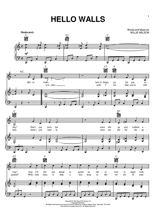 Digital Sheet Music for Hello Walls by Willie Nelson scored for Piano/Vocal/Chords; id:384602