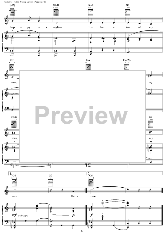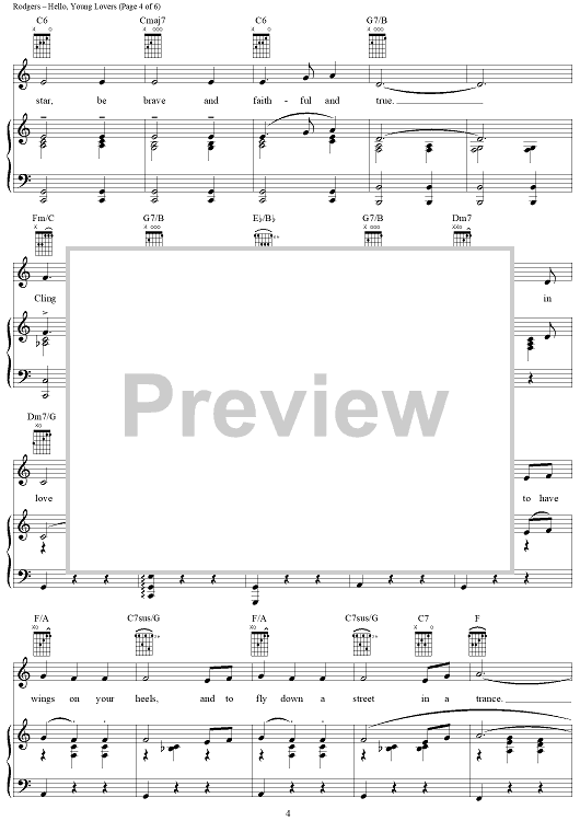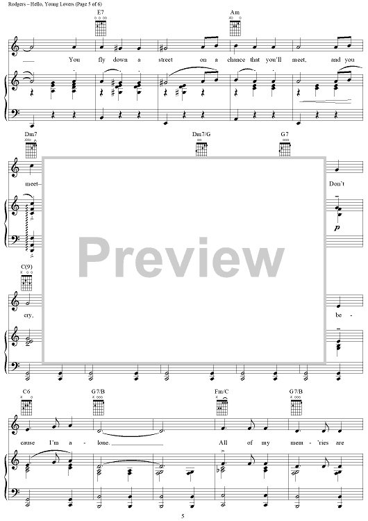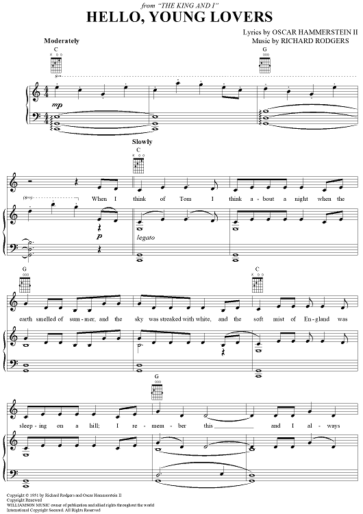Digital Sheet Music for Hello, Young Lovers by Richard Rodgers, Oscar Hammerstein II scored for Piano/Vocal/Chords; id:368060