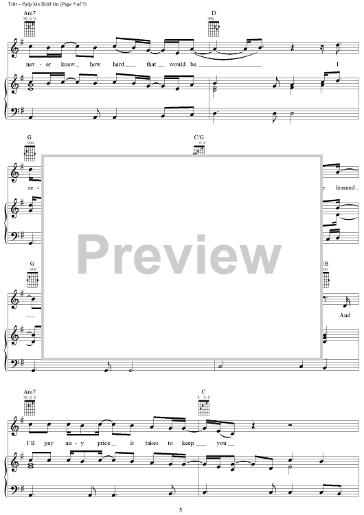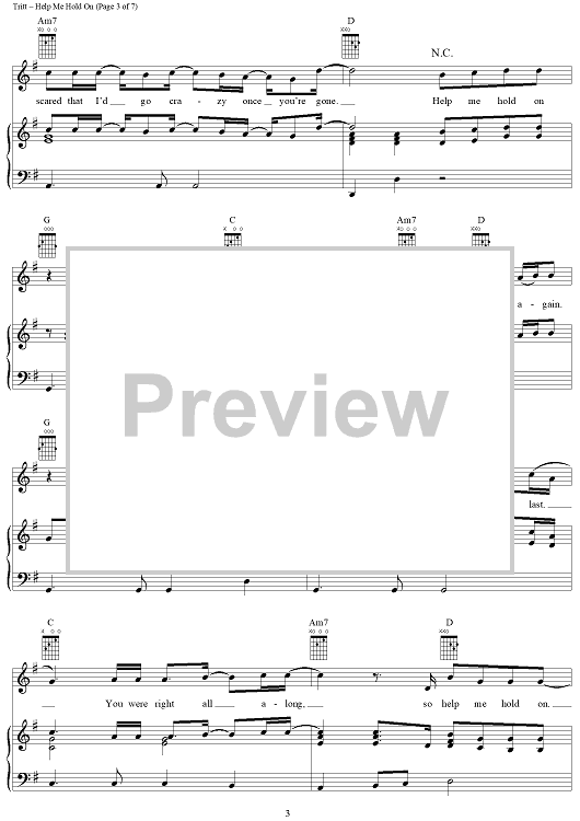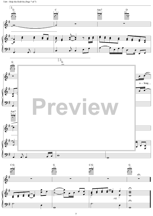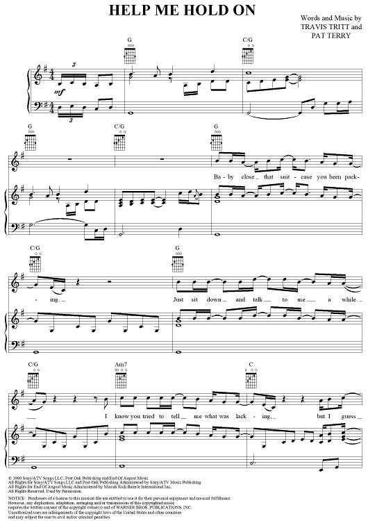 Digital Sheet Music for Help Me Hold On by Travis Tritt, Pat Terry scored for Piano/Vocal/Chords; id:285520