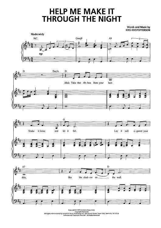 Digital Sheet Music for Help Me Make It Through The Night by Kris Kristofferson, Michael Buble scored for Piano/Vocal/Chords; id:467445