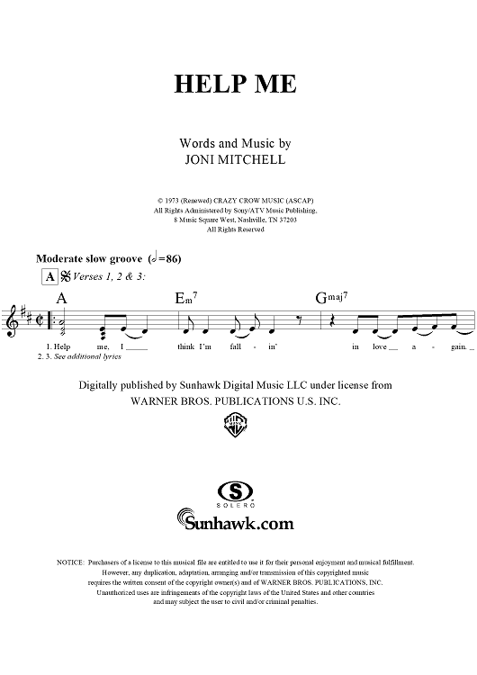 Digital Sheet Music for Help Me by Joni Mitchell scored for Lead Sheet; id:293952