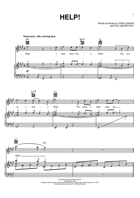 Digital Sheet Music for Help! by Paul McCartney, The Beatles, John Lennon, Deep Purple, The Damned scored for Piano/Vocal/Chords; id:372428
