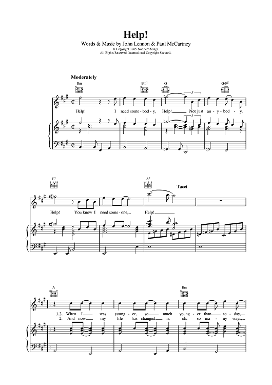 Digital Sheet Music for Help by Paul McCartney, The Beatles, John Lennon scored for Piano/Vocal/Chords; id:379011