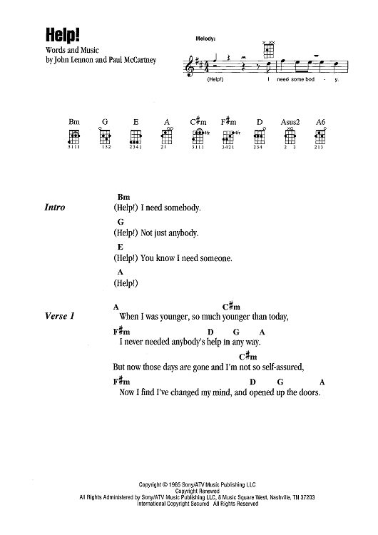 Digital Sheet Music for Help! by Paul McCartney, The Beatles, John Lennon scored for Ukulele/Vocal; id:466360