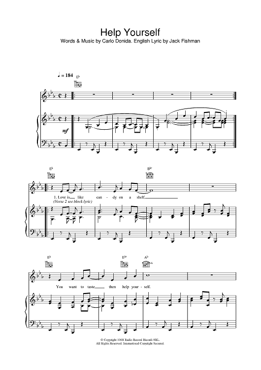 Digital Sheet Music for Help Yourself by Tom Jones scored for Piano/Vocal/Chords; id:376597