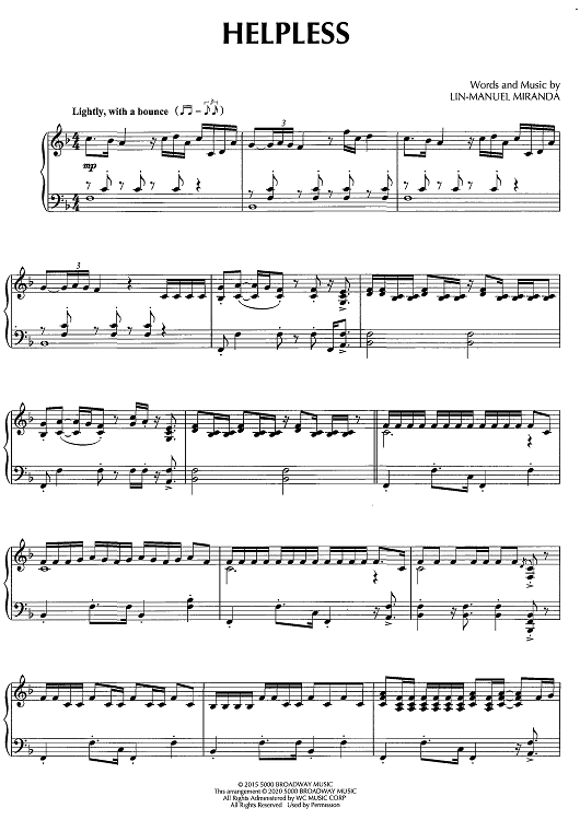 Digital Sheet Music for Helpless by David Pearl, Lin-Manuel Miranda scored for Piano Solo; id:468903